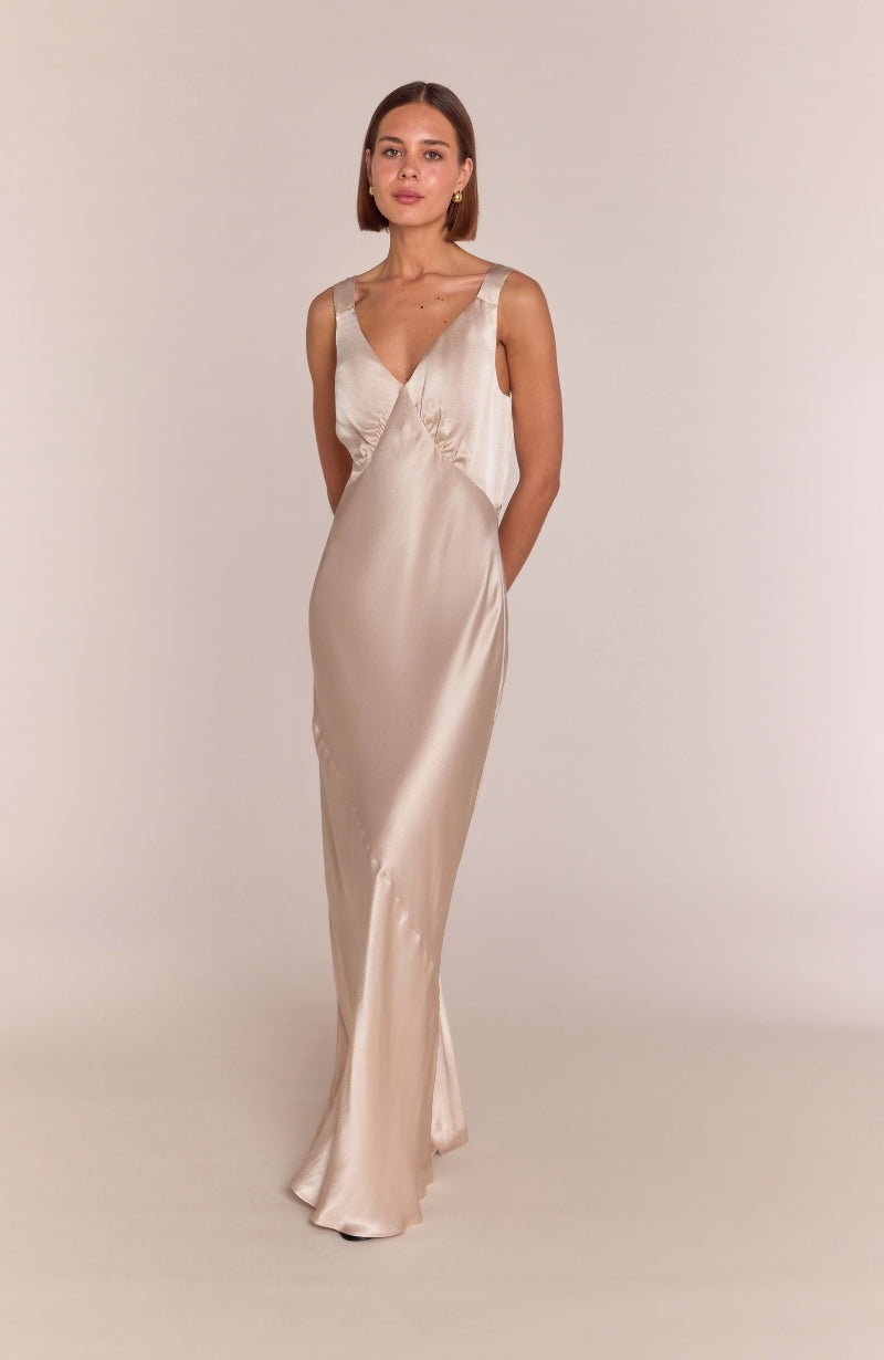 Amelia Dress in Champagne Satin - Rewritten – Rewritten