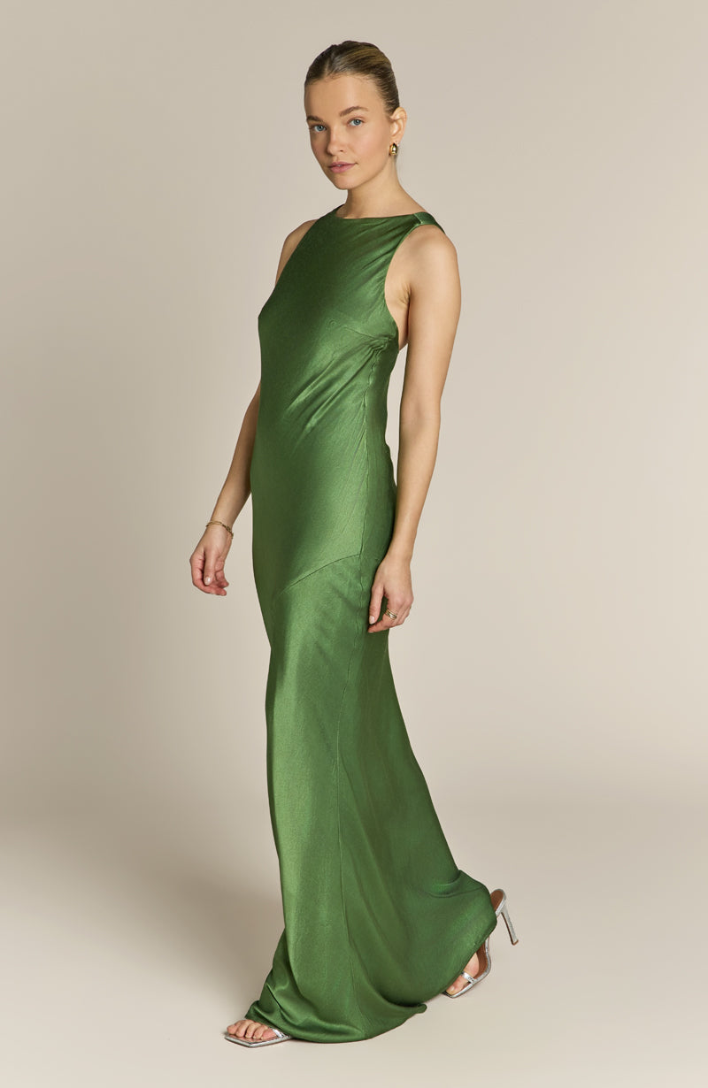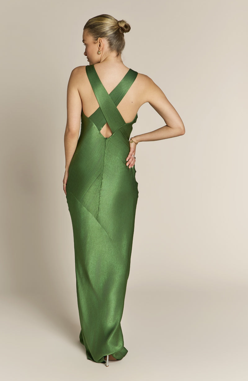 Paris Dress in Olive Green Viscose Satin - Rewritten – Rewritten