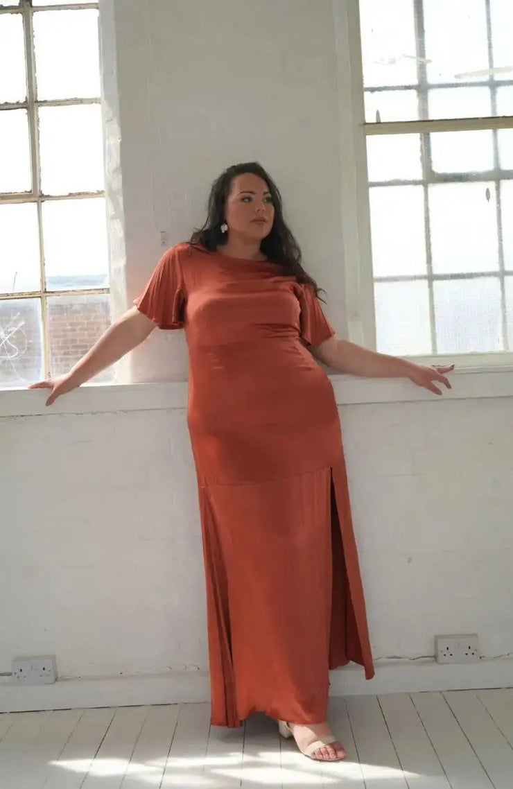 Made in the most beautiful flowing Lenzing™ Ecovero™ satin, the Sienna bridesmaids dress in Terracotta is not only incredibly comfortable but is also super flattering, with a cinched in waist, capped sleeves and subtle side split. Trust us, this terracotta brown bridesmaids dress is one you will want to wear again and again.